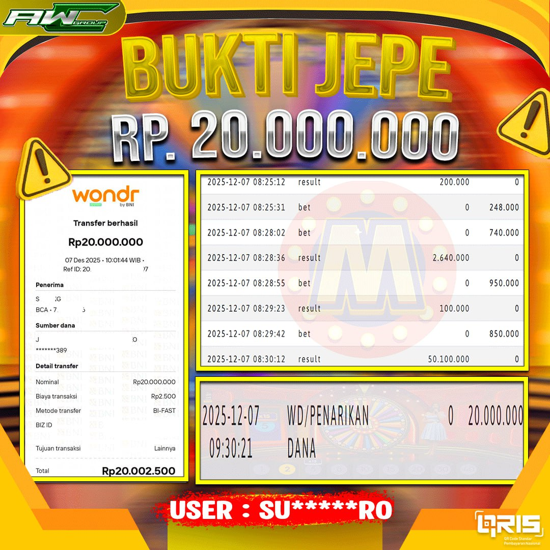 ID : SU******RO JACKPOT PAUS DI PRAGMATIC LIVE CASINO NAMA GAME : Mega Wheel TOTAL WITHDRAW : 20.000.000